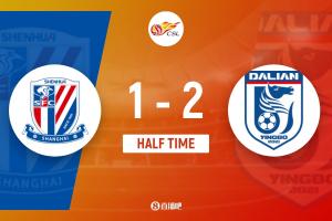 上半場補(bǔ)時5分鐘,申花1-2大連英博。