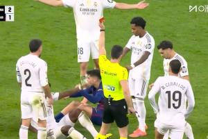 體育資訊10月27日訊 皇馬vs巴薩第99分鐘,佩德里趟球過大犯規(guī)吃到第2黃!此前拉拽維尼修斯染黃!