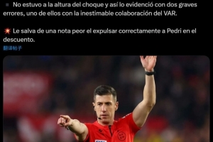 西媒Archivo VAR在賽后為本場(chǎng)比賽主裁判格拉多打分:“災(zāi)難級(jí)表現(xiàn),2.5分。”