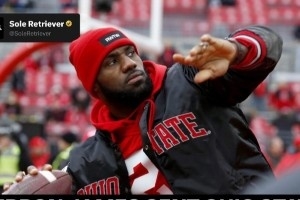 體育資訊10月27日訊 球鞋媒體Soleretriever報道,詹姆斯和Nike為家鄉(xiāng)俄亥俄州立大學(xué)橄欖球隊制作了橄欖球版本的特殊鞋款。