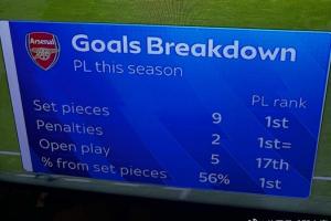 【定位球大師??】天空體育統(tǒng)計阿森納本賽季英超16個進球分布: