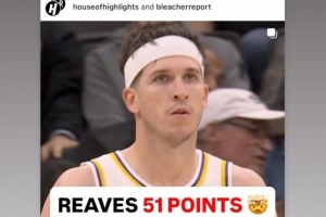 此役,里夫斯出戰(zhàn)39分鐘,22投12中,三分球10中6,22罰21中爆砍生涯新高的51分外加11板9助2斷,正負(fù)值高達+22。