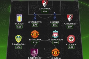 中場:布倫登-阿隆森(利茲聯(lián),8.58分)、姆伯莫(曼聯(lián),9.16分)、索博斯洛伊(利物浦,8.40分)、沙德(布倫特福德,8.29分)