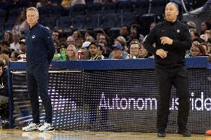 大概流程就是如此:哈登和萊昂納德的單挑維持了上半場均勢,下半場庫里帶動局勢反超,吉米帶二陣拉開20分收掉比賽。萊昂納德+哈登32投38分,庫里+吉米27投39分,助攻:勇士老兩位13,對面2。 哈登和萊昂納德面對換防和強側(cè)收縮,只能一個個打:隊友不跑嘛。 勇士今天的換防之外,侵略性的強側(cè)收縮是關鍵:追夢和庫里的快手(倆人5個搶斷),希爾德不止一次無球換防洛佩斯,穆迪下半場的強硬單防,之類。 于是庫里和吉米基本是你舍我?。耗惴呕@下我找內(nèi)切,你收縮我找三分:隊友也一一回應。 今天吉米12投21分,0罰球:這是吉米11個月以來第一場0罰球——順便,隔壁亞歷山大今天26投2罰球,過去三場65投8罰——針對祖巴茨和洛佩斯:拋射。 以及:三個三分球——他上次單場射進3個三分球,一年半前的事了?!?/p>