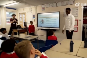 ????薩卡驚喜現(xiàn)身小學(xué)時(shí)期的母校,當(dāng)時(shí)孩子們正在做關(guān)于自己偶像的演講。