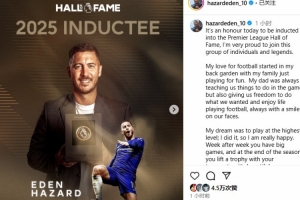 體育資訊10月29日訊 英超官方宣布,切爾西名宿阿扎爾入選英超名人堂。阿扎爾更新社媒,談到自己得獎(jiǎng)的興奮之情。