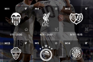 體育資訊10月30日訊 11月即將到來,皇馬官方曬出了球隊(duì)賽程。除了11月1日主場(chǎng)迎戰(zhàn)瓦倫西亞外,西甲豪門將迎來5連客,其中包括前往安菲爾德挑戰(zhàn)利物浦。
