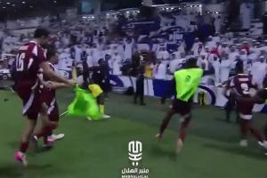 這一舉動點燃了阿聯(lián)酋球迷的怒火,他們紛紛向場內(nèi)投資水瓶、鞋子等雜物,更有控制不住的阿聯(lián)酋球迷直接沖場與安保扭打在一起。