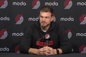 體育資訊11月1日訊 今日NBA杯小組賽,開拓者對(duì)陣掘金,斯普利特賽前接受了媒體采訪。