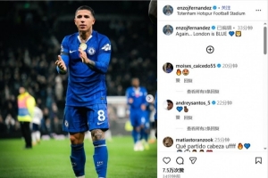 體育資訊11月2日訊 2025-26賽季英超第10輪焦點戰(zhàn),切爾西1-0擊敗熱刺。賽后,藍(lán)軍中場恩佐在社交媒體曬圖,慶祝球隊獲勝。