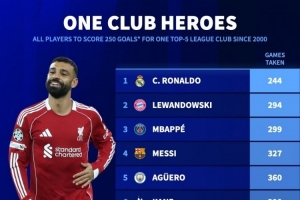 體育資訊11月2日訊 英超第10輪比賽,薩拉赫破門(mén),利物浦主場(chǎng)2-0擊敗維拉。薩拉赫各賽事為利物浦攻入250球,德國(guó)轉(zhuǎn)會(huì)市場(chǎng)統(tǒng)計(jì)了本世紀(jì)五大聯(lián)賽球員為單一俱樂(lè)部攻入250球所用場(chǎng)次,并列出榜單。