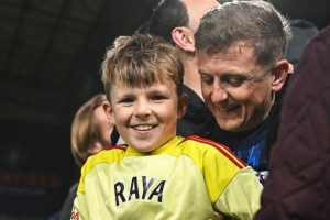 阿森納門將拉亞賽后將自己的球衣和手套送給了一位小球迷,展現(xiàn)了自己的親和力。