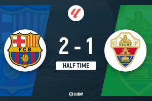 半場結(jié)束,巴薩暫2-1埃爾切。
