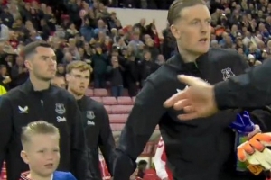 此役皮克福德?lián)伟8ヮD首發(fā)門(mén)將,他的兒子身穿桑德蘭和埃弗頓的拼接球衣入場(chǎng)。