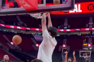 賽前,開(kāi)拓者跟隊(duì)記者@yovic曬出視頻,楊瀚森與助教羅尼-伯勒爾連續(xù)對(duì)抗熱身,籃下終結(jié)連續(xù)暴扣,勾手也連續(xù)命中。