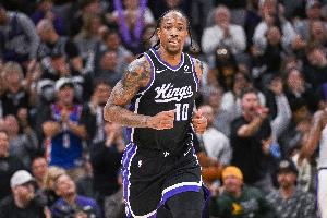 上半場比賽,德羅贊出戰(zhàn)18分32秒,投籃12中7,罰球1中1,得到15分3籃板1搶斷。