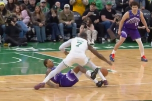 GIF-杰倫-布朗遭飛鏟,沒有被吹犯規(guī)