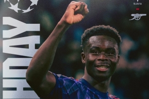 阿森納官方更新社媒動態(tài),曬出了為此役制作的海報,薩卡單人出鏡。