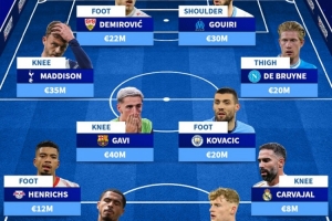 體育資訊11月4日訊 德國轉會市場列出了因傷缺席今年剩余比賽球員陣容,德布勞內、加維、卡瓦哈爾在列。