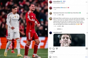 麥卡在進(jìn)球后比出“A”字母慶祝的動作,也被很多人視為對阿諾德的“貼臉開大”,因為這和阿諾德的慶祝幾乎一模一樣。