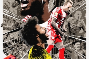 海報(bào)是充滿張力的拼貼畫(huà)風(fēng)格,拜仁后衛(wèi)于帕梅卡諾、凱恩一同出鏡,背景還有昔日對(duì)決瞬間。