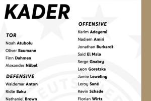 進攻端:阿德耶米(多特)、阿米里(美因茨)、伯卡特(法蘭克福)、馬拉(科?。?、格納布里(拜仁)、格雷茨卡(拜仁)、勒威林(斯圖加特)、薩內(nèi)(加拉塔薩雷)、沙德(布倫特福德)、維爾茨(利物浦)、沃爾特馬德(紐卡)