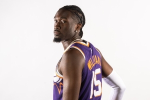 此役,太陽中鋒馬克·威廉姆斯出戰(zhàn)28分鐘,8中4得到13分10板2搶斷。