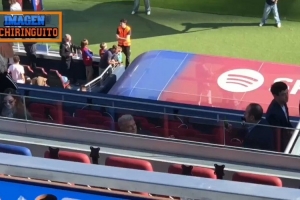 巴薩今日在諾坎普球場進(jìn)行公開訓(xùn)練,俱樂部主席拉波爾塔來到現(xiàn)場。