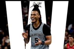 比賽結(jié)束后,馬刺官推曬出了本場比賽的贏球海報(bào),卡斯?fàn)柕巧戏饷妗?/p>