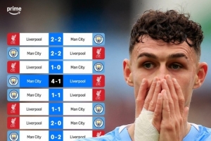 據(jù)媒體統(tǒng)計,近8次在英超對陣利物浦,曼城僅取勝1場,具體戰(zhàn)績1勝4平3負。