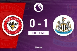 傷停補時5分鐘。上半場比賽結(jié)束,布倫特福德0-1紐卡斯?fàn)柭?lián)。