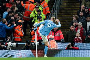 體育資訊11月10日訊 英超第11輪比賽,曼城在伊蒂哈德球場(chǎng)迎戰(zhàn)利物浦。本場(chǎng)比賽,主隊(duì)前鋒哈蘭德盡管在上半場(chǎng)錯(cuò)失1粒點(diǎn)球,但他之后頭槌破門為球隊(duì)首開(kāi)紀(jì)錄。