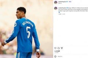 貝林厄姆曬出自己的比賽照,并配文:“客戰(zhàn)巴列卡諾總是很艱難,但我們拿到了一分并繼續(xù)向前看。我們必須團(tuán)結(jié)一致,為國家隊(duì)比賽周之后的又一輪密集賽程做好準(zhǔn)備。馬德里前進(jìn)!”