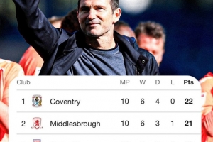 考文垂本賽季前10場(chǎng)英冠6勝4平保持不敗,在積分榜上以1分優(yōu)勢(shì)領(lǐng)先米德?tīng)査贡の痪影袷祝蜿?duì)10場(chǎng)比賽打進(jìn)29球(聯(lián)賽最多),只丟7球(已經(jīng)連續(xù)5場(chǎng)零封)。