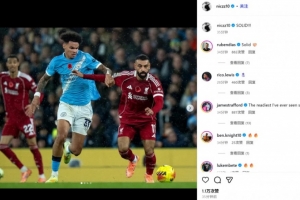 奧賴?yán)餐ㄟ^社媒曬出自己對位薩拉赫的比賽照,并配文“硬!”表達(dá)自己的興奮之情。