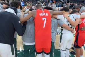 GIF-賽后杜蘭特和謝潑德“加入”雄鹿祈禱圈