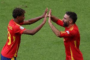 佩德里和加維因傷缺席,德拉富恩特此次只征召了5名巴薩球員:亞馬爾、庫(kù)巴西、費(fèi)爾明、奧爾莫和費(fèi)蘭。西班牙將在15日在第比利斯對(duì)陣格魯吉亞,并于18日在塞維利亞迎戰(zhàn)土耳其,這場(chǎng)比賽可能將決定他們能否直接晉級(jí)世界杯。