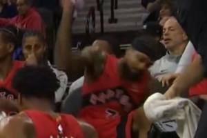 “很多人都認為他應(yīng)該站起來道歉。我理解他的沮喪,他在比賽中摔倒得很尷尬,而且那是一場艱難的比賽,他們有很多失誤,最終沒能贏得比賽。但我不認為這是正確的回應(yīng)方式。有人說他像三歲小孩一樣,確實如此,這種事情經(jīng)常發(fā)生在有小孩的家庭里。但我認為這不是合適的反應(yīng)。他應(yīng)該對此道歉,但他沒有這樣做,沒有任何反應(yīng)。我不知道他當時是怎么想的,但作為一個普通人,我認為他應(yīng)該有所表示。他不應(yīng)該坐在那里看著大家清理,尤其是當水濺到隊友臉上時。他應(yīng)該幫助清理,而不是讓別人的生活變得更加困難。也許這是因為他是超級富豪,覺得這些人理應(yīng)為他服務(wù)。但我們不應(yīng)該輕易下結(jié)論。他看起來非常沮喪,可能只是心情不好而已。”Donnie Freeman表示。