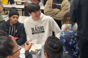 開(kāi)拓者今日全隊(duì)參與社區(qū)活動(dòng),小吧也來(lái)到了現(xiàn)場(chǎng),發(fā)現(xiàn)楊瀚森真的很招小球迷們的喜愛(ài)。很多小孩子圍著楊瀚森轉(zhuǎn),小楊笑得也很開(kāi)心。