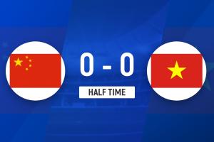 上半場比賽結(jié)束,U22國足0-0越南U22。