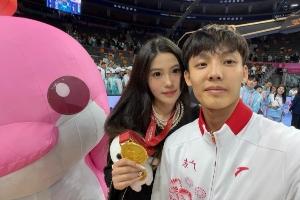 賽后,徐杰女友更新社媒,曬出了徐杰和自己的親密合照,還有徐杰為自己佩戴金牌的視頻。