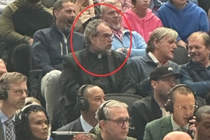 據(jù)隨隊(duì)記者Nick Angstadt報(bào)道,觀眾席上哈里森原來(lái)的座位上今天坐著一位牧師。