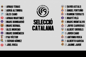 1-特納斯(比利亞雷亞爾)、2-阿爾蒂米拉(比利亞雷亞爾)、3-亞歷克斯·卡諾(CE歐羅巴)、4-阿爾瑙·馬丁內(nèi)斯(赫羅納)、5-邦巴(安道爾FC)、6-伯納爾(巴薩)、7-亞歷克斯·莫雷諾(赫羅納)、8-馬克·多梅內(nèi)克(安道爾FC)、9-保·維克托(布拉加)、10-塞爾吉奧·戈麥斯(皇家社會(huì))、11-喬爾·羅卡(赫羅納)、12-阿斯塔爾斯(薩瓦德爾體育)、13-福圖尼奧(西班牙人)、14-特拉茨(西班牙人)、15-馬蒂·維拉(安道爾FC)、16-蒙塔爾沃(塔拉戈納體操)、17-喬弗雷·卡雷拉斯(西班牙人)、18-奧里爾斯(薩瓦德爾體育)、19-喬迪·卡諾(CE歐羅巴)、20-安東尼奧·羅卡(西班牙人)、21-阿爾伯托·加西亞(圣安德魯聯(lián)盟)、22-雅爾迪(塔拉戈納體操)