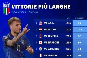 體育資訊11月14日訊 北京時(shí)間11月17日凌晨,意大利將在世預(yù)賽最后一輪比賽中主場對陣挪威,意大利此役需要至少凈勝挪威9球,才能直接出線。德國轉(zhuǎn)會市場列出了意大利隊(duì)史最大比分勝利榜單。