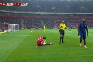 體育資訊11月15日訊 波蘭vs荷蘭第74分鐘,萊萬在爭(zhēng)搶時(shí)拉傷,直接坐下了,但暫時(shí)沒有換人。