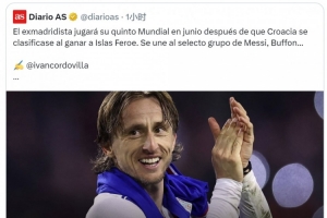 40歲克羅地亞中場(chǎng)莫德里奇將迎來(lái)自己的第5屆世界杯,西班牙媒體《阿斯報(bào)》主編、皇馬球迷龍賽羅轉(zhuǎn)發(fā)相關(guān)新聞,配文:“永恒的莫德里奇,偉大的盧卡(莫德里奇)!”