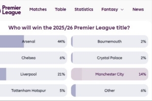 英超官網(wǎng)表示,這可能是英超有史以來最精彩的冠軍爭奪戰(zhàn)之一。他們發(fā)起了“誰能最終奪冠?”的球迷投票,槍手最被看好,他們的得票率高達44%。紅軍曼城緊隨其后。