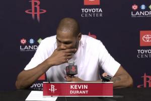 賽后,杜蘭特參加新聞發(fā)布會(huì),接受了記者的采訪。