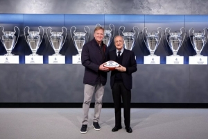 今天,皇馬主席弗洛倫蒂諾與NFL總裁羅杰·古德?tīng)枙?huì)面并互贈(zèng)禮物,弗洛倫蒂諾獲贈(zèng)橄欖球,古德?tīng)柅@贈(zèng)皇馬1號(hào)球衣以及伯納烏模型。