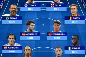 后衛(wèi):卡拉雷斯(西班牙,5000萬)、約羅(法國(guó),5500萬)、薩姆·別克馬(荷蘭,2800萬)、卡約德(意大利,2000萬)